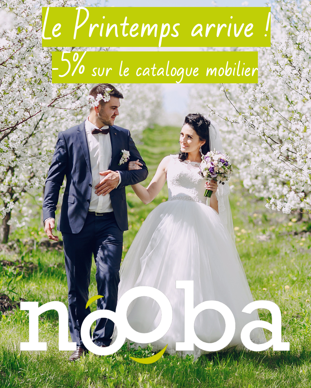 Pour fêter l’arrivée de la nouvelle saison : Du 13 au 20 mars, profitez d’une remise exceptionnelle de -5 % sur tout le mobilier Nooba avec le code : printemps5 (Offre valable sur la catégorie mobilier, hors packs et promotions déjà en cours).