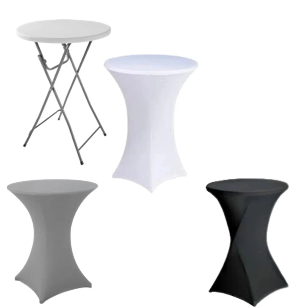 Envie d’une réception élégante sans complication ? Nos mange-debout avec housses en lycra sont la solution parfaite pour un rendu chic en un clin d’œil.