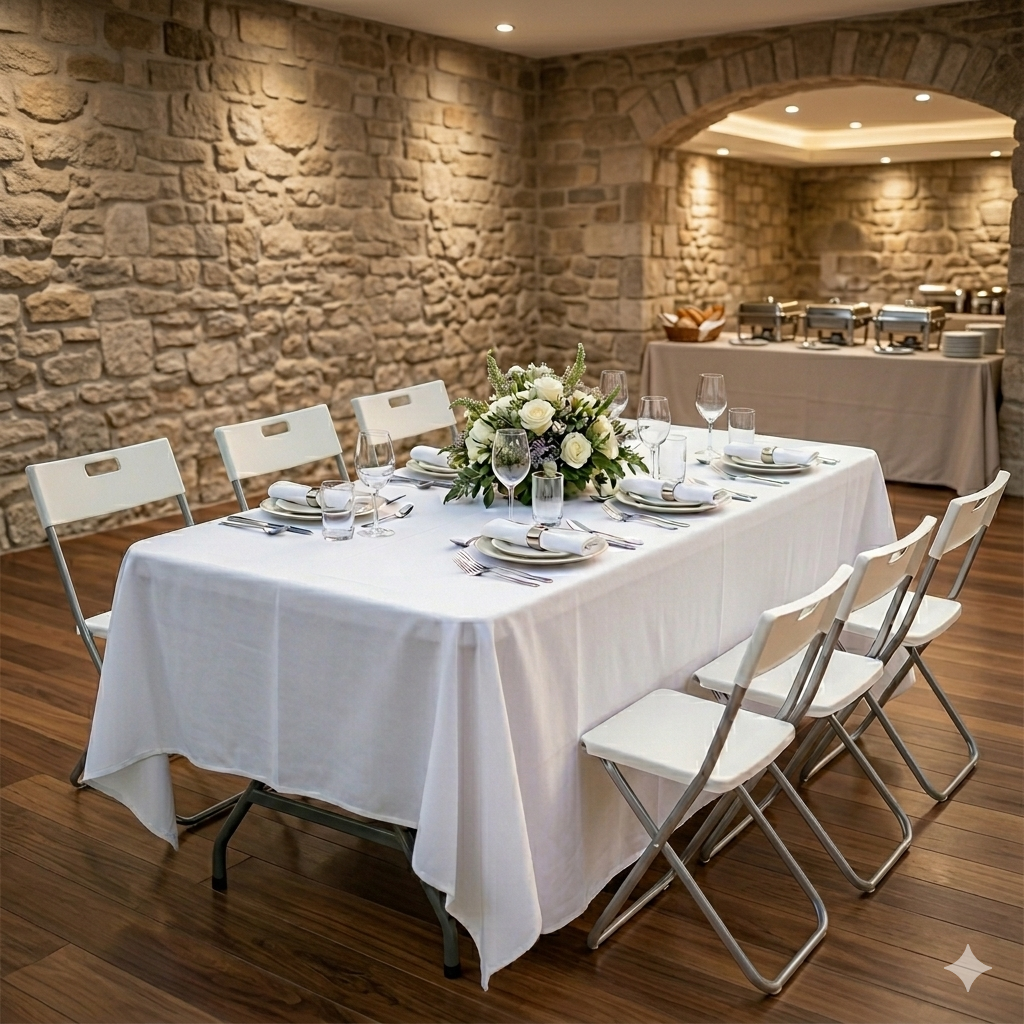 Notre Pack Confort est l’option idéale si vous recherchez un ensemble fonctionnel, facile à installer et parfait pour vos buffets, réunions, repas ou réceptions décontractées.