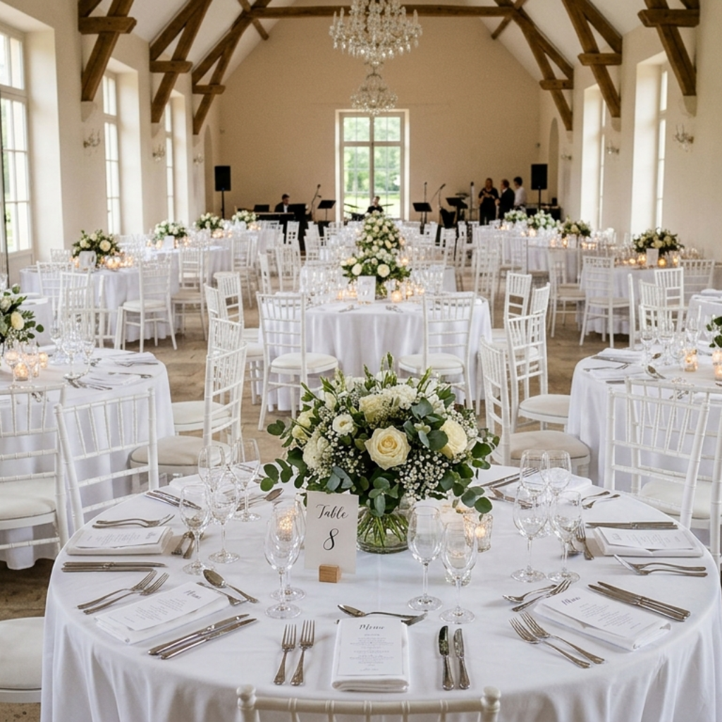 - Élégance Classique : Un blanc éclatant qui s'adapte à tous les thèmes, du mariage chic au dîner de gala.