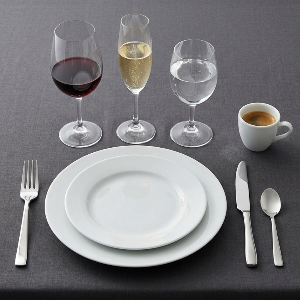Vaisselle Blanche – PACK PRESTIGE (Couverts et Verres Inclus)